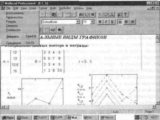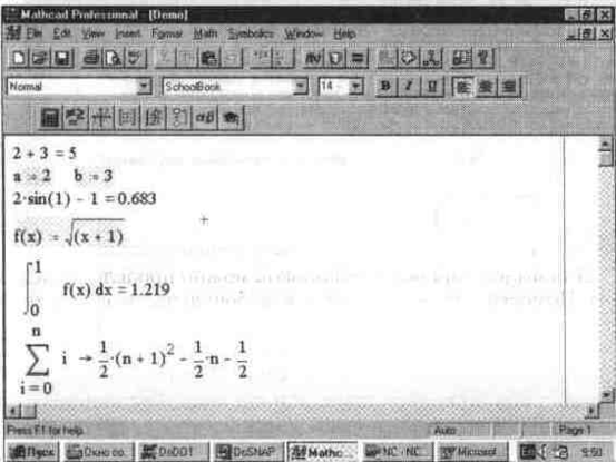 Вид документа в большом окне MathCAD при использовании обычных средств подготовки документов ничем не отличается от вида документа в более ранних версиях системы 2. 0—2. 50, ориентированных на MS-DOS. На рис. 1. 6 был показан вид основного окна MathCAD 7. 0 с загруженным в него документом.
