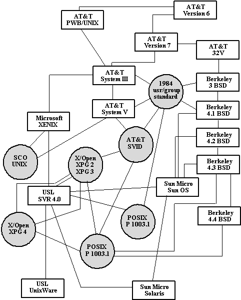 Рис. 1.1. Генеалогическое дерево ОС UNIX