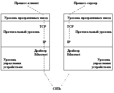 Эти базовые возможности были в принципе достаточными для создания сетевых утилит; в частности, на их основе был создан исходный в ОС UNIX механизм сетевых взаимодействий uucp. Однако организация сетевых взаимодействий пользовательских процессов была затруднительна главным образом потому, что при использовании конкретной сетевой аппаратуры и конкретного сетевого протокола требовалось выполнять множество системных вызовов ioctl, что делало программы зависимыми от специфической сетевой среды. Требовался поддерживаемый ядром механизм, позволяющий скрыть особенности этой среды и позволить единообразно взаимодействовать процессам, выполняющимся на одном компьютере, в пределах одной локальной сети или разнесенным на разные компьютеры территориально распределенной сети. Первое решение этой проблемы было предложено и реализовано в UNIX BSD 4.1 в 1982 г. (вводную информацию см. в п. 2.7.3).