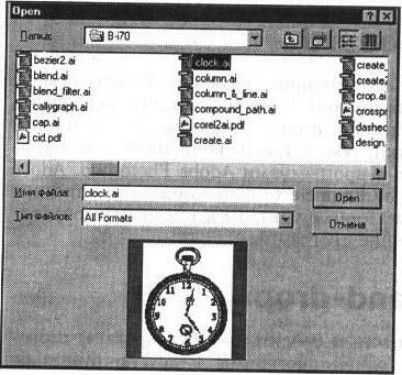 Команда Open... (Открыть...) меню File (Файл) открывает документы, созданные другими программами, в качестве нового документа программы Adobe Illustrator, используя чаще всего установки по умолчанию.