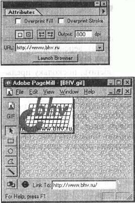 Ссылка на URL-адрес создается в палитре Attributes (Атрибуты) (рис. 14-4). В поле URL вводится или выбирается из имеющегося списка необходимый адрес.