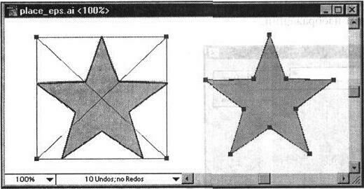 Рис. 14-2. Отображение изображения в формате EPS при установленном (слева) и при неустановленном флажке Link (Связать) (справа)