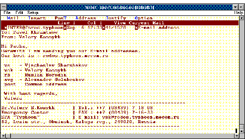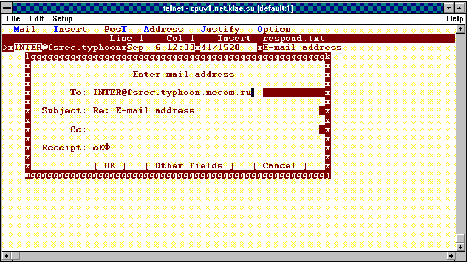 Для перехода в падающее меню используется функциональная клавиша F9. Для отправки сообщения из режима редактирования следует нажать ALT+T или выйти в меню Post. При отправке почты следует заполнить специальную форму (рисунок 3.7).