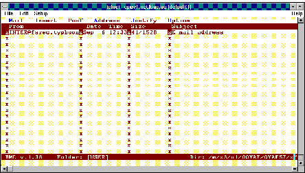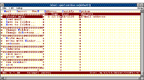 На экране появляется сообщение о версии системы, список полученных сообщений и список команд, которыми может воспользоваться пользователь. Следует обратить внимание на то, что некоторые версии elm способны подстраиваться под размер экрана автоматически. Пример экрана elm представлен на рисунке 3.8.