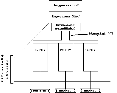 Рис 2.1.2 Структура физического уровня Fast Ethernet
