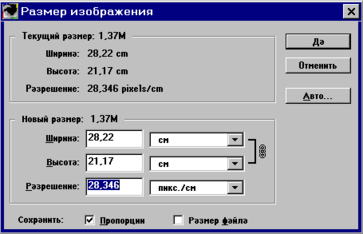 Команда «Размер изображения»