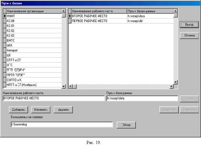 На рисунке 19 приведен видеокадр работы системы в режиме настройки путей доступа к базам подразделений.