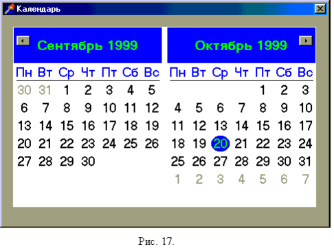 календарь (предназначен для удобства ориентации пользователя в рабочем времени, приведен на рисунке 17);