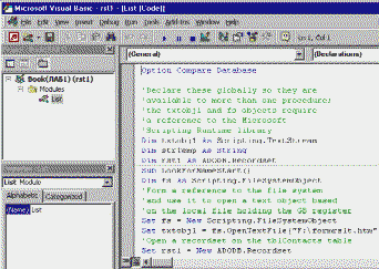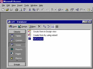 Оператор Set связывает ссылку на новый объект, имеющий доступ к системному файлу с переменной fs. Также этот оператор связывает ссылку на новый объект fs, в котором открывается файл Myformrstl.htm(См.Рис.12) для чтения ( с помощью оператора Open) с диска F: на локальном компьютере с объектомt xtobj1. Он также связывает rst1 с новым встроенным объектом ADO базы данных. Потом в объекте rst1 открывается таблица “tblContacts” в текущем проекте CurrentProject.Connection.