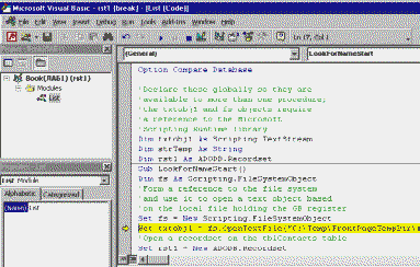 Как описывалось выше этот набор процедур используется в приложении Access, для считывания данных с файла с расширением html. В этом файле хранятся данные о пользователях Гостевой книги.