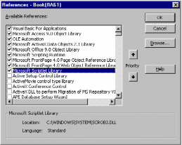 Частью любого проекта VBA является набор ссылок на библиотеку типов всех компонентов IDE, которые применяются в данном проекте. Простые проекты содержат небольшое количество ссылок, которые применяются VBA, интерфейсом автоматизации и базовым приложением. Ссылками можно управлять интерактивно посредствам диалогового окна Ссылки(См.Рис.5) или программным путём, посредствам Rferences класса VBProject.