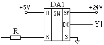 В данной работе автомат генерирует выходной сигнал управления электромагнитом (=24В, 10Вт). Данная мощность явно не позволяет подключать электромагнит непосредственно к выходу микропроцессора, поэтому здесь целесообразно применить мощные твердотельные оптоэлектронные реле. Мощность на выходе которых может достигать достаточно больших значений. В оптопаре одновременно реализуется гальваническая развязка силовой и управляющей цепей, а также усиление по мощности сигнала.