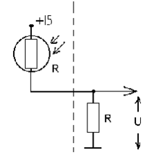 Сигнал с датчика освещенности (фоторезистора СФ2-1) снимаем по такой схеме: