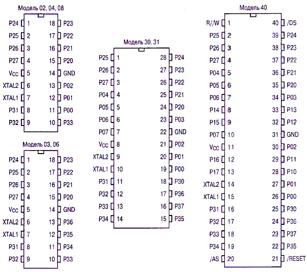 Рис. 1.48. Расположение выводов микроконтроллеров Z8