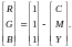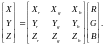 - цвета для получения координаты единичного основного цвета R, аналогично и для G и B. Если известны координаты цветности CIE x и y для основных цветов RGB, то: