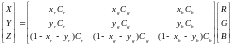 . При проецировании треугольника XYZ на плоскость (x, y) получаем цветовой график CIE. Координаты x и y - относительные количества трех основных цветов XYZ, требуемых для составления нужного цвета. Яркость определяется величиной Y, а X и Y подбираются в соответствующем масштабе. Таким образом, триада (x, y, Y) задает цвет. Обратное преобразование имеет вид: