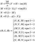 Приведем формулы связи RGB и HSV, представленного в виде шестигранного конуса: HSV в RGB: