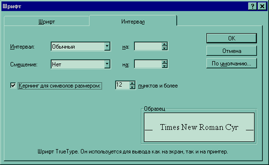 рис. 5. Вкладка Интервал окна диалога Шрифт