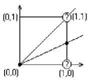 октанте, т. е. для отрезка с угловым коэффициентом, лежащим в диапазоне от нуля до единицы. Из рисунка можно заметить, что если угловой коэффициент отрезка из точки (0,0) больше чем 1/2, то его пересечение с прямой x = 1 будет расположено ближе к прямой у = 1, чем к прямой у = 0. Следовательно, точка растра (1,1) лучше аппроксимирует ход отрезка, чем точка (1,0). Если угловой коэффициент меньше 1/2, то верно обратное. Для углового коэффициента равного 1/2 нет какого-либо предпочтительного выбора. В данном случае алгоритм выбирает точку (1,1).