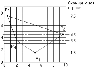 Горизонтальные ребра не могут пересекать сканирующую строку и, таким образом, игнорируются. Это совсем не означает, что их нет на рисунке. Эти ребра формируются верхней и нижней строками пикселов.