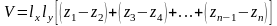 Алгоритм трассировки лучей можно использовать, кроме того, для определения физических свойств сплошного тела. Полное рассмотрение этого вопроса не входит в эту работу. Однако для иллюстрации этого подхода приведем один пример. В частности, объем любого сплошного тела можно определить, аппроксимируя его суммой маленьких прямоугольных параллелепипедов. Это можно проделать, породив множество параллельных лучей, расположенных на определенных расстояниях друг от друга. Точки пересечения каждого луча с заданным объемом вычисляются и упорядочиваются вдоль направления этого луча. Если подвергнуть луч переносу, совмещающему его с осью z, как это было описано выше, то объем каждого прямоугольного параллелепипеда будет равен: