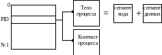 Рассмотрим информативную нагрузку таблицы. В строке-записи таблицы находится ссылка на контекст процесса, там же находится ссылка на тело процесса. Телом процесса мы будем называть набор команд и данных, которыми оперирует процесс.