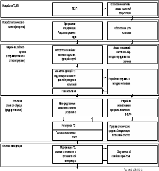На рис. 16 изображена технологическая схема в виде этапов подготовки и проведения испытания и их связи с этапами разработки ПС.
