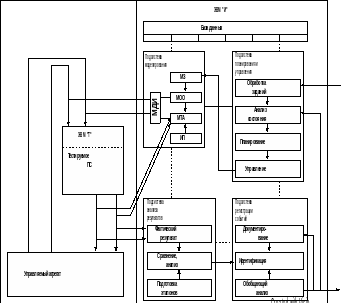 Программное обеспечение КИМИС в общем случае состоит из следующих подсистем: моделирования, анализа результатов испытания, регистрации событий (документирования), планирования и управления и базы данных (рис. 20). В состав подсистемы моделирования входят: модель заявок на обработку (МЗ), модель объекта обработки (МОО); модели датчиков информации (МДИ); имитатор помех (ИП); модель управляемого технологического агрегата (МТА).