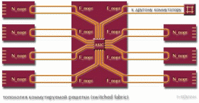 Наиболее перспективная топология, позволяющая преодолеть все ограничения петли с арбитражным доступом и представить каждому N_порту выделенный канал FC-AL. Как уже понятно из названия, в основу решетки положен Fibre Channel коммутатор с F_портами (Fabric ports).