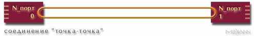 Самая простая схема, основанная на последовательном полнодуплексном соединении двух N_портов с взаимоприемлемыми параметрами физического соединения и одинаковыми классами сервиса. Один из узлов получает адрес 0, а другой — 1.