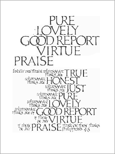 Во-первых, шрифтовая композиция (с точки зрения художника-шрифтовика, каллиграфа) есть способ самовыражения, выливающийся в самостоятельную творческую форму, композицию, очень часто лист, способный украсить любой офис или кабинет. И такие примеры нам известны с давних времен. Такая композиция должна максимально полно показать особенности шрифта, его тонкости, суть...