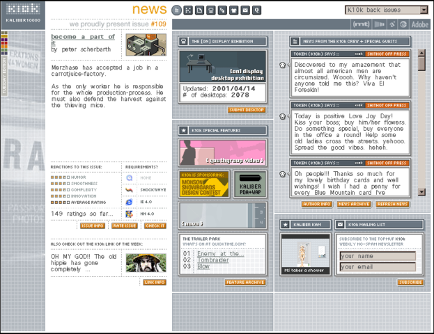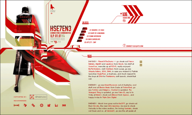 Этот сайт можно отнести полиграфическому и динамическому дизайну. Сайт разбит на 3 основных колонки , а колнки на более мелкие блоки что придаёт ему вид газеты. И главное виден свой стиль и унекальность сайта. Собственно с этого сайта и начелся альтернативный дизайн. Сразу появилось множество клонов и просто пахожих по стилю сайтов.