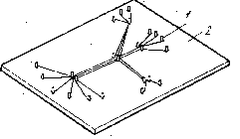 Конструктивно-технологическая отработка жгута дает возможность изготовить его вне ЭВА путем раскладки монтажных проводов и кабелей на шаблоне. В зависимости от конфигурации жгутов применяют плоские или объемные шаблоны. Плоский шаблон (рис. 8) представляет собой основание 2, на котором в соответствии с трассировкой (см. рис. 2) 'и конфигурацией жгута расположены металлические шпильки 1.