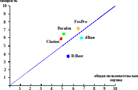 | производительность | многосторонность | обработка ошибок | сложность обучения | сложность использования | общая пользовательская оценка | мощность | |