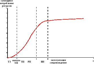 Это соотношение характерно и для отдельных стадий этапов разработки и кривые потребления на отдельных с. и э. пересекаются, и накладываемые части кривой, связанной с конкретным этапом могут переходить на следующие этапы.