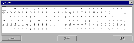3. Выберите символ и щелкните на кнопке Insert. Frontpage вставит символ на страницу, но не закроет диалоговое окно, чтобы, повторяя эту процедуру, вы смогли вставить нужное количество символов.