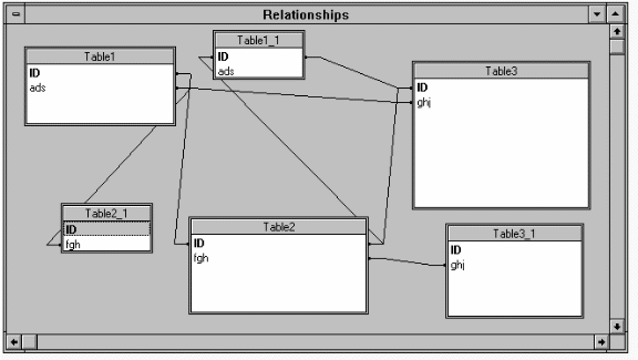 В меню Edit выберите директиву Relationships, или щелкните мышью на кнопке Relationships в строке пиктограмм. Откроется окно Relationships , затем окно Add Table.