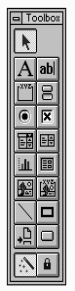 Для встраивания управляющих элементов в отчет на экране должно присутствовать инструментальное меню Toolbox (опция View/Toolbox). В инструментальном меню выбирается кнопка создаваемого управляющего элемента. После этого следует выполнить мышью щелчок в той позиции прототипа отчета, где надлежит разместить данный управляющий элемент. Access размещает выбранный элемент, приписывая ему по умолчанию стандартные значения характеристик (размер, цвет и т.п.).