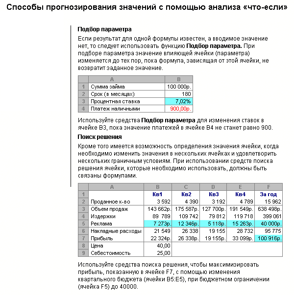 Кроме опорных таблиц, в программе Excel имеются и другие методы анализа наборов данных. Очень полезной является директива поиска решения уравнений, которая по заданным значениям полей находит другие значения, удовлетворяющие определенным соотношениям.