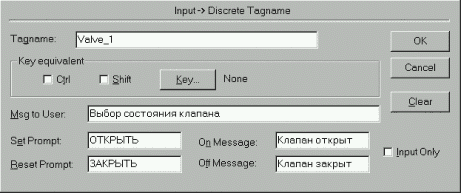 На рис.5 приведен диалог для определения свойств объекта (кнопки), управляющего значением дискретной переменной.