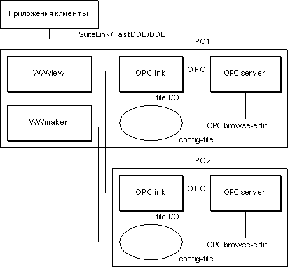 Для реализации функций OPC - клиента Wonderware предлагает OPCLink - сервер, преобразующий OPC в SuitLink - протокол.