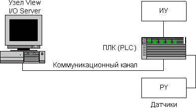 Так как InTouch предназначен для разработки и поддержания интерфейса сбора данных и диспетчерского управления (рис.8), среда исполнения WindowViewer при взаимодействии с контроллерным уровнем выступает, как правило, в роли приложения - клиента (узел View), запрашивающего данные у приложения - сервера (I/O Server).