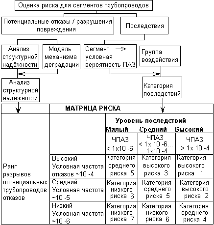В табл. 7 приведено разбиение механизмов деградации по категориям риска для оценки потенциальных разрывов трубопроводов в рамках матрицы риска.