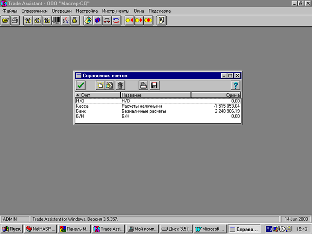 Рис. 11. Справочник расчетных счетов ООО "Мастер-СД"