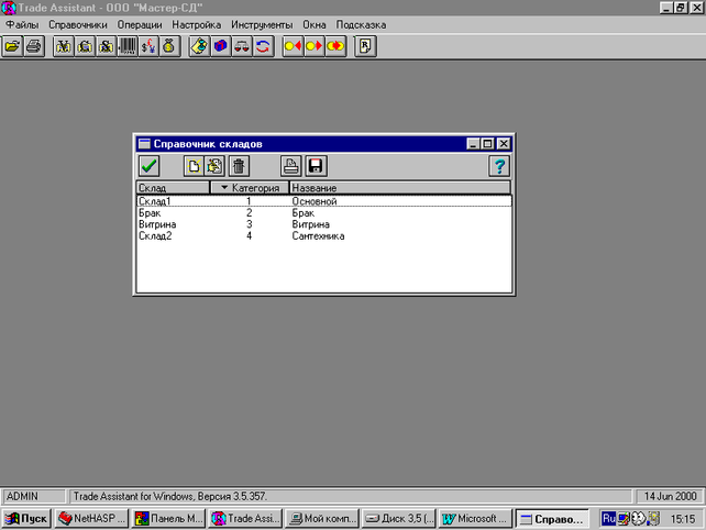 Рис. 10. Справочник складов ООО "Мастер-СД"