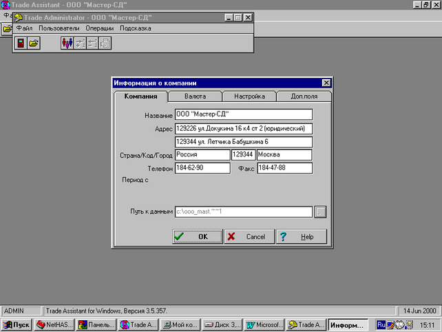 Рис. 7. Настройка Trade Assistant на ООО «Мастер-СД»