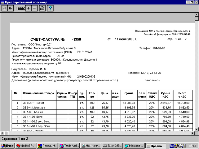Рис. 15. Счет-фактура ООО "Мастер-СД"