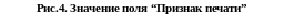 Значение поля “Признак печати” (5-9 разряды 1-го слова)