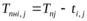 Поздний срок наступления события (Tni) - максимально допустимый срок наступления данного события, при котором сохраняется возможность соблюдения ранних сроков наступления последующих событий, равен разности между продолжительностью критического пути и наибольшего из путей, ведущих от завершающего события данному (формула (4)).