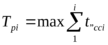 Ранний срок наступления события (Tpi) - минимальный срок, необходимый для выполнения всех работ, предшествующих данному событию, равен продолжительности наибольшего из путей, ведущих от исходного события 1 к данному (формула (3)).